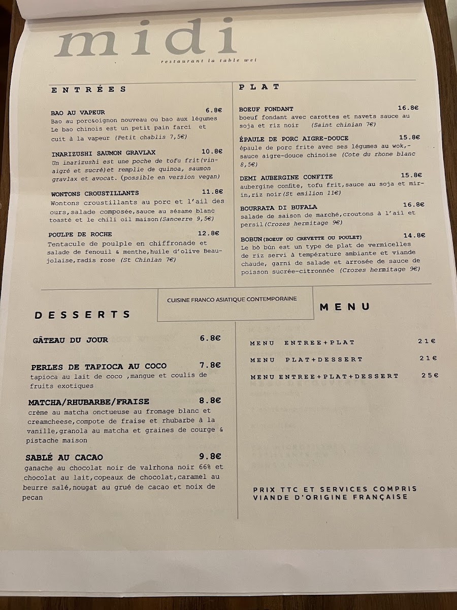 Welcome to la table Wei, a culinary gem nestled in the heart of Lyon at 13 Rue Neuve. This restaurant redefines fusion cuisine by skillfully intertwining French techniques with the vibrant flavors of East Asian culinary traditions. The inviting atmosphere is complemented by a friendly staff that enhances your dining experience.